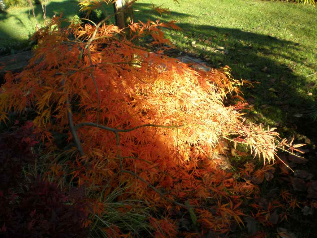 diesen acer habe ich mit dem schild "acer diss. atrop." erhalten. gegoogelt habe ich dann acer palmatum "dissectum atropurpureum". er hatte seinerzeit in voller sonne eine feuerrote färbung. gesetzt ist er eher schattig. er ist wunderschön