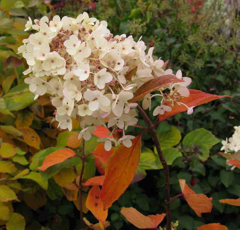 troll,färbt deine H. paniculta 'Grandiflora' nicht. Unser 'Typ' verfärbt sich ins rötliche jetzt im Herbst.