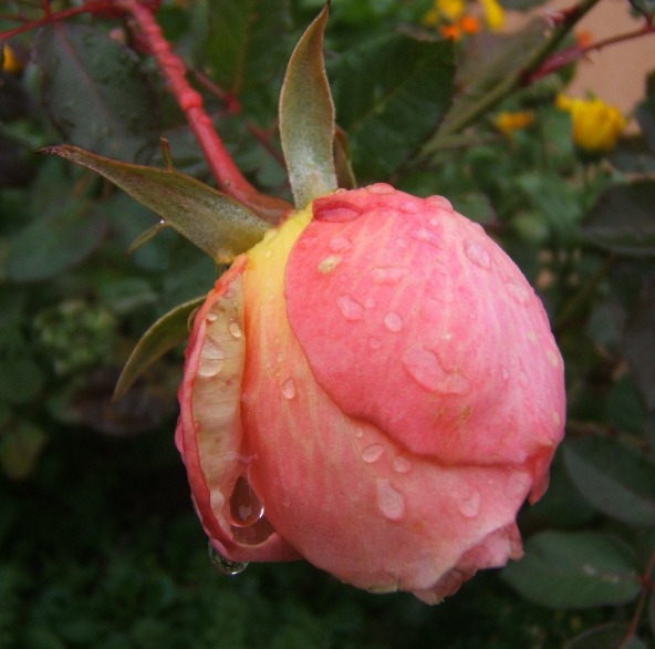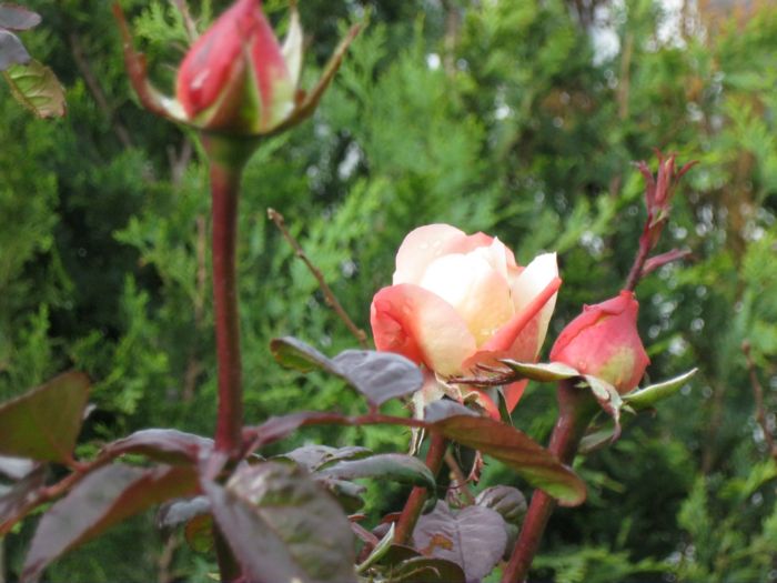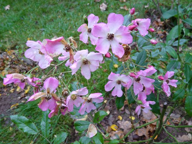 Richtig üppig blühen noch Little White Pet und Amulett.Ein paar ungewöhnlich leuchtfarbene Knospen erhellen den trüb-nass-kalten Novembergarten: Teasing Georgia