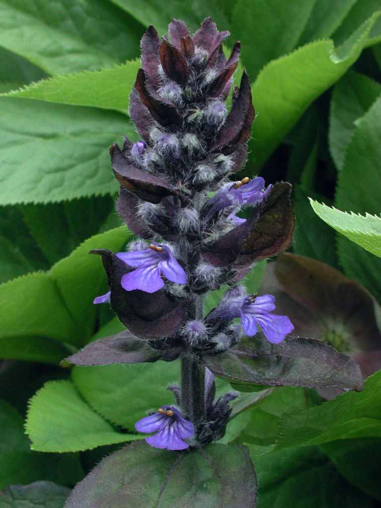 So,jetzt noch zwei Pics von (Halb-)Schattenstauden aus der Familie der Lamiaceae: Lamium orvala Alba ist die weisse Variante des Nesselkönigs. Sie ist all denen uneingeschränkt zu empfehlen, die Taubnesseln wie Lamium album oder Lamium maculatum mögen, aber sich vor deren exzessiven Expansionsdrang fürchten: Lamium orvala dagegen bildet brav Horste, nur erscheinen hier dann und wann mal ein paar Sämlinge. :)Diese riesenhafte Form des Günsels Ajuga reptans habe ich seit einigen Jahren in Kultur. Sie ist ein guter Wachser, aber ähnlich wie Erdbeeren nur mit oberflächlichen Ausläufern. Sie braucht Platz, bildet dabei aber eine dichte Bodendecke, die kein Unkraut mehr hochkommen läßt. Die Blütenstände mit den dunkelblauen Blüten wird bei mir so 50-60 cm hoch (!), wie das Bild mit einem ausgewachsenen Helleborus orientalis im Hintergrund zeigt. ;)Ph.