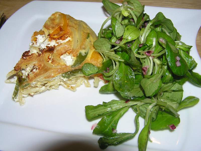 Mmhh, Aella deine fritatta sieht lecker aus.Bei uns gabs Spagetti Bolognaise und Endiviensalat.