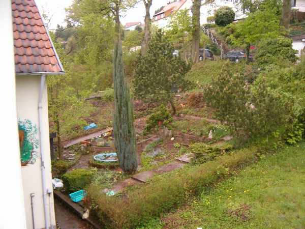 Die Farbe find ich allerdings schon witzig. @Hortulanus: Ja bei den Beeten schwanke ich auch zwischen klassisch streng und verspielt. Nun ja dieses Jahr dürfen erst mal die geschenkten Sachen und die Maiglöckchen dort wachsen. Beton ist es definitiv, aber menno wo du es gerade schreibst, die hätten ruhig ein Kupferbecken nehmen können. 8)Da sich mein Geschmack in Gartenfragen ja sozusagen noch im Entwicklungsstadium befindet lass ich mir damit auch noch Zeit. Aber das Rondell in der Mitte würde ich gerne dieses Jahr noch gestalten.@Heinone:Ja das ist ein Teil unseres Wuchergartens. :DWenn ich danach gehe was die Nachbarn erzählen, waren die Vorbesitzer ziemlich bekloppt. Allerdings haben sie andererseits mit sehr viel Liebe diesen Garten angelegt, sonst gäbs nicht so verwunschene Ecken. Der Hahn hat ein Schraubgewinde ist aber kaputt, wie die Schwengelpumpe auch.@Tilia: Diese bemoosten Steine am Rand sind herrlich, die wollen wir auf jeden Fall lassen.@Nina: Danke!
