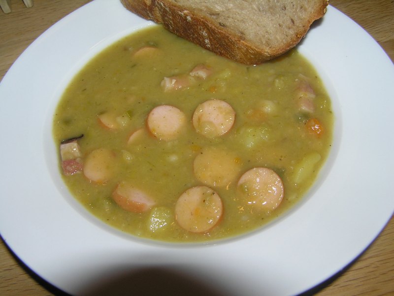 bei uns gabs gerade erbsensuppe (gestern schon vorgekocht) mit wurzelbrot