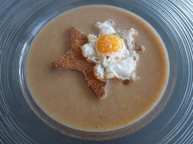 Kastaniensuppe mit einem "Zimtstern" und Wachtel-Spiegeleidanach Lasagne