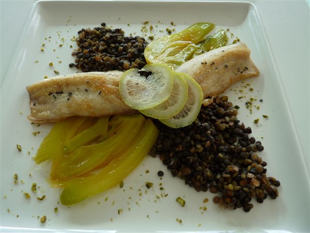 es gab Bodenseefelchen auf Linsen und Curryfenchel