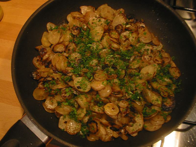 Ich hab gestern die Oxalis deppei (Sauer-/Glücksklee) Rübchen zubereitet. In Butter geschmort mit Pfeffer, Salz und Petersilie schmeckten sie uns wieder richtig lecker! Dazu gab es noch eine Scheibe Rindersülze und Gartensalat.
