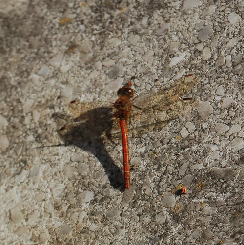 Gestern sah ich die wahrscheinlich letzte Libelle dieser Teichsaison sich auf einem Stein am Teichrand ausruhen.