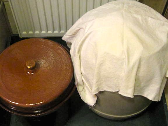 Ja da musste er schon ganz schön ran und auf den Bildern sieht man nichtmal alles, denn er musste auch noch ein Tonfässchen einstampfen. Mit dem Plastikfass machen wir das schon ganz lange und es funktioniert prima. Mir schmeckt das aus dem Plastikfass fast besser, es behält irgendwie mehr Biss.