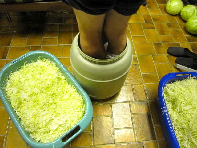 Ja da musste er schon ganz schön ran und auf den Bildern sieht man nichtmal alles, denn er musste auch noch ein Tonfässchen einstampfen. Mit dem Plastikfass machen wir das schon ganz lange und es funktioniert prima. Mir schmeckt das aus dem Plastikfass fast besser, es behält irgendwie mehr Biss.