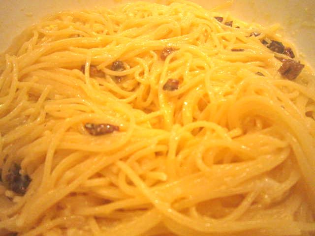Bei uns gabs heute Spaghetti Carbonara dazu einen Chinakohlsalat