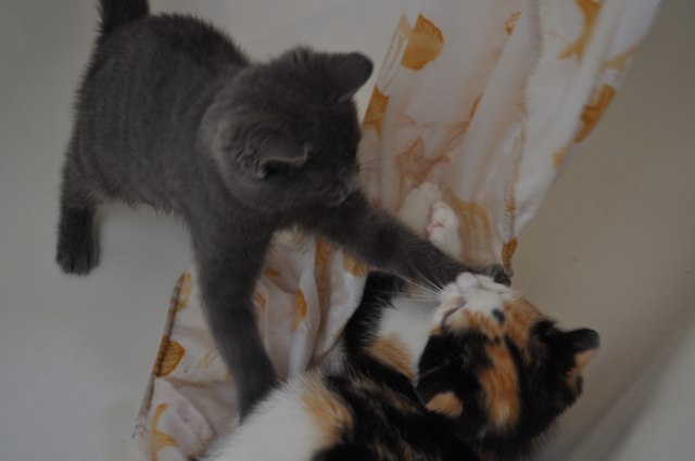 Fluffy tobt herum wie eine Wilde! Nur an den Augen und der Nase sieht man noch, dass sie noch nicht 100% gesund ist.Barbara, sei mir nicht bös, aber Ayran und Gouda enthalten Salz und das ist für Katzen eh nicht so gesund, für Nierenkranke ist es Gift. Ich würde die tolle Wirkung des teuren Diätfutters nicht durch zufüttern von "Leckerlis" gefährden.@ schalotte: extra für dich ein Bild mit Nebelpfötchen