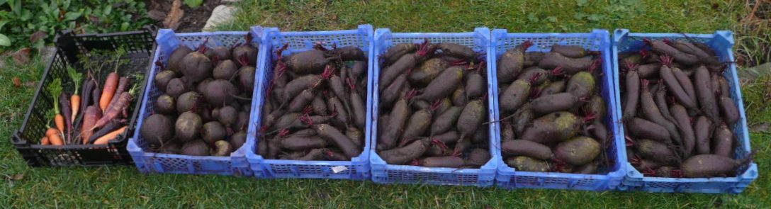 Letzten Sonntag:Karotten, Räben und Randen (eingekellert)Himbeeren (direkt verputzt)Meerrettich (kompostiert, da völlig verholzt
