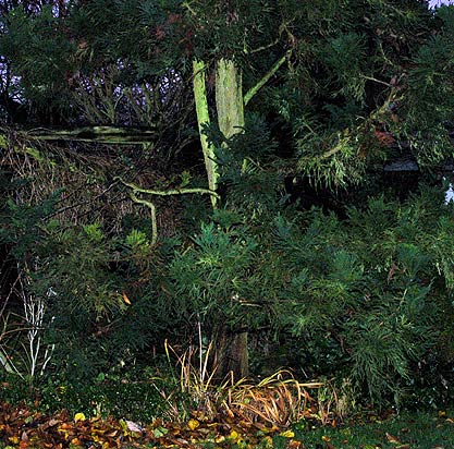 @ninbeth: hier das versprochene, aber s c h l e c h t e Bild, nur gedacht als info über Wuchs und selbst der ist kaum gut zu sehen - leider weder Licht ( darum Blitzversuch ) heute noch reicht der Abstand ( nächster Baum Hängebirke in 15 m Abstand, hängt ins Bild.... ), auch Weitwinkel keine Chance. Nehmt es so hin... 15 m... allerdings in 20 Jahren...