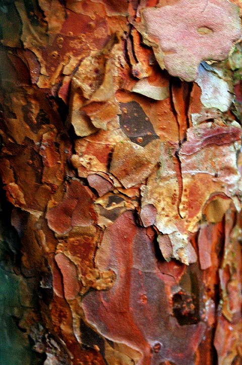 dies ist die Rinde einen sogenannten "Schlangenkiefer"... leider schon wieder zu dunkel zum knipsen, wenigstens die Farbe stimmt: