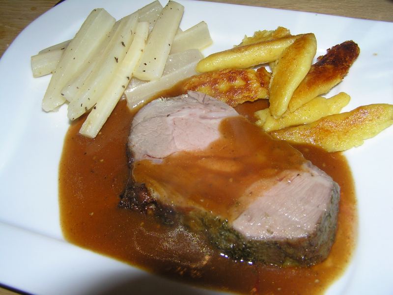 bei uns gabs schweinebraten mit (verunglückten) schupfnudeln und schwarzwurzeln.als nachtisch obstsalat (ananas, orange, banane, apfel, granatapfel, maracuia, sonnenblumenkerne) mit milchmädchen