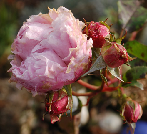 Diese Bilder sind vom Samstag, als die Sonne eine gute Stunde schien.Marie Rose, auch die letzte Blüte, nachher hab ich sie abgeschnitten.