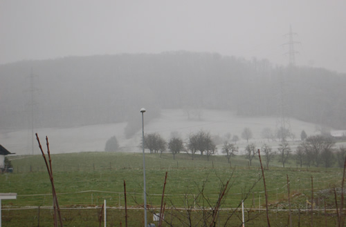 Fast schon Langlaufwetter. :PHier gabs am frühen (na ja, um 7.30 Uhr) Morgen auch kurzes Nassschneegewirbel, das indessen keine Spuren hinterliess. Nun erfreuen wir uns wieder an mittelgrauen Wolken bei drei Grad plus. Perfektes Emo-Wetter: sich ein wenig bedauern und dabei Lust empfinden.5 cm Neuschnee bei minus 2°