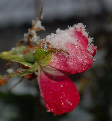 Soviele halbgeöffnete Blüten trägt sie da oben noch. Dortmund bei Schnee: