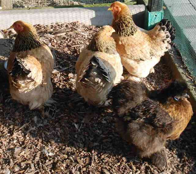 Ja, das werde ich gleich morgen im Tierladen holenEs ging wunderbar heute im Lauf. Nur in den Schlafstall wollten sie nicht, sie hatten sich darunter einquartiert. Nun müssen sie das noch lernen; denn im Schlossgarten sassen sie auch nur unter dem Dach auf den Leitersprossen