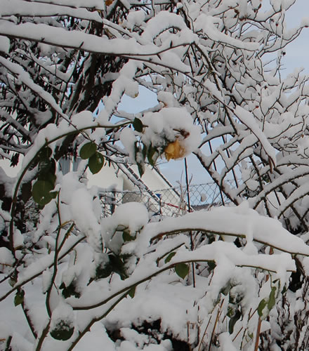 hier gibt der Balkon nur noch 2 Knospen/Blüten an Azubis her. Jetzt ist die Azubis auch unter der Haube (aus Schnee).Aber sie hat wohl gerne einen kühlen Kopf, noch macht sie's mit: