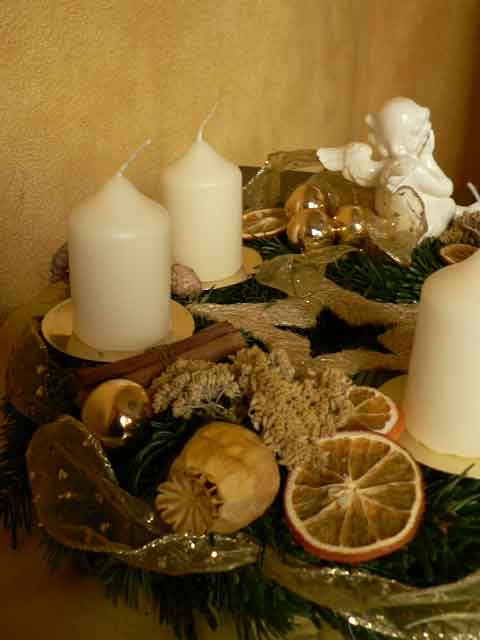 so, das habt ihr nun davon *lacht*ich stelle mir zum zweiten mal in den letzten jahren einen adventskranz in das wohnzimmer.dank nachbarschaftlicher hilfe (danke, m*