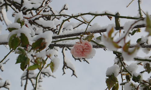 Die Souvenir de Malmaison Clg lächelte mich taper an durch den Schnee!