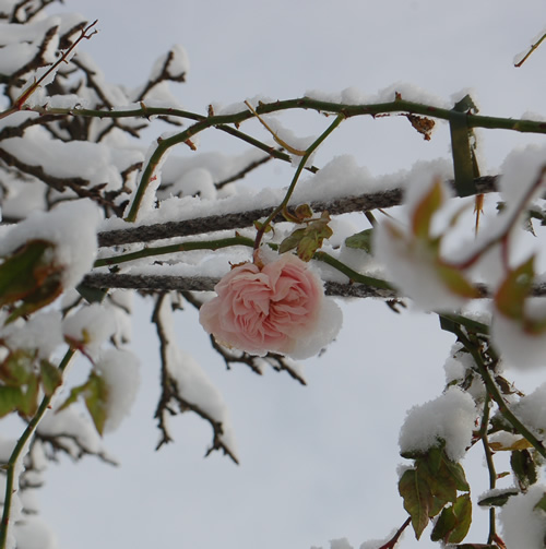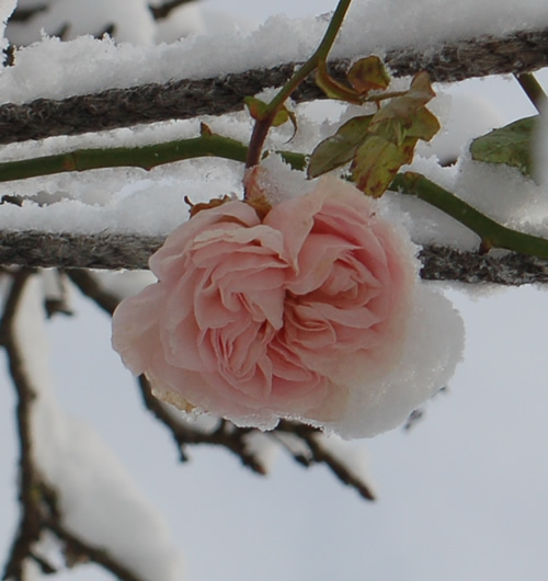 Die Souvenir de Malmaison Clg lächelte mich taper an durch den Schnee!