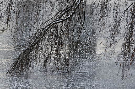 Ich werde mit dem ersten Foto nicht recht warm ... vielleicht stören mich die Pfeiler?Aber das zweite Foto zeigt ja ein Motiv, wenn auch in (wie ich finde) unglücklicher Komposition. Eine Möglichkeit wäre ein viel stärkerer Ausschnitt (so wie unten angehängt), um das Motiv der das Wasser / Eis streichelnden Zweige zu zeigen. - Besser wäre es natürlich, wenn hier ein Hauptzweig in der Diagonale läge, aber das lässt sich durch den nachträglichen Beschnitt nicht erreichen.Telefotos bzw. Ausschnitte führen oft mit verhältnismäßig einfachen Mitteln zum Ziel. Interessanter fände ich deshalb den Versuch, die winterliche Bachbiegung doch irgendwie 'gut' ins Bild zu setzen. Aber da ich die Verhältnisse 'vor Ort' nicht kenne, kann ich leider nicht beurteilen, ob das möglich wäre.Liebe GrüßeThomas