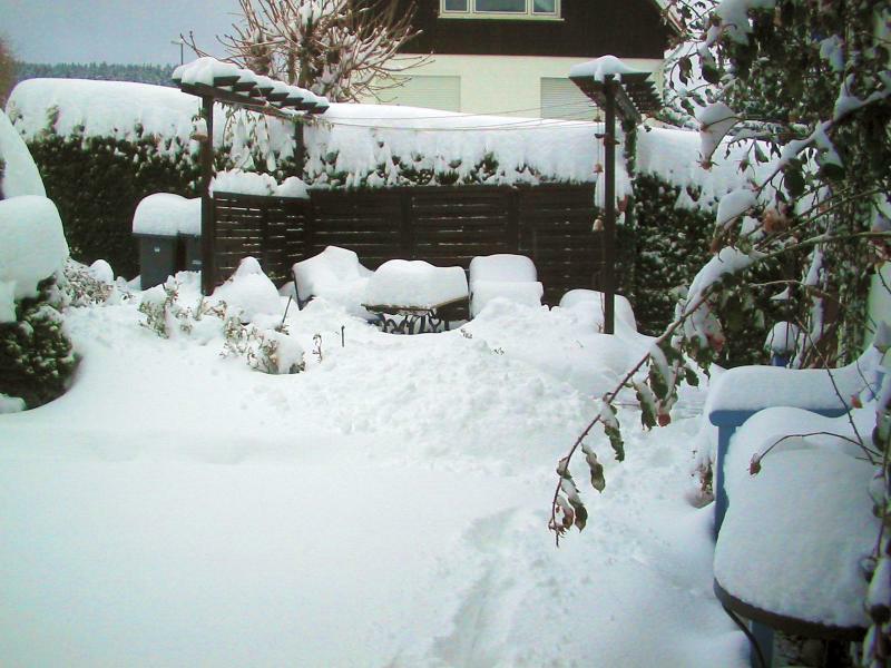 Vermelde erneut 40 cm Neuschnee.Ein Auto + den Hänger kriegen wir gar nicht mehr raus..... Wohin nur mit dem Schnee??Auf den Straßen katastrophale Zustände, die Autofahrer sitzen z.T. 15 Stunden im Stau im Auto... Toll.Viele Straßen gesperrt, Bäume umgefallen, Stromausfall in einigen Gemeinden, zum Glück noch nicht bei uns....
