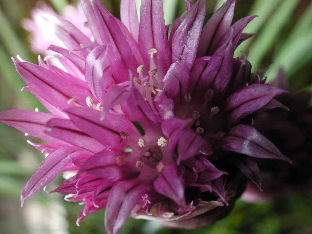Diesen Lauch habe ich mal vor einigen Jahren aus Samen gezogen. Es sollte eigentlich Allium tuberosum sein, aber der blüht ja eher weiß oder hell-rosa, und nicht so dunkel. Er sieht übrigens genauso aus wie Allium schoenoprasum, der Schnittlauch, ist aber doppelt so groß. Also vermute ich mal, es handelt sich bei diesem sehr dekorativen und zudem gewürzmäßig nutzbaren Lauch um Allium sibiricum, der ja eventuell eine polyploide Form von Allium schoenoprasum darstellt. ;)Ph.