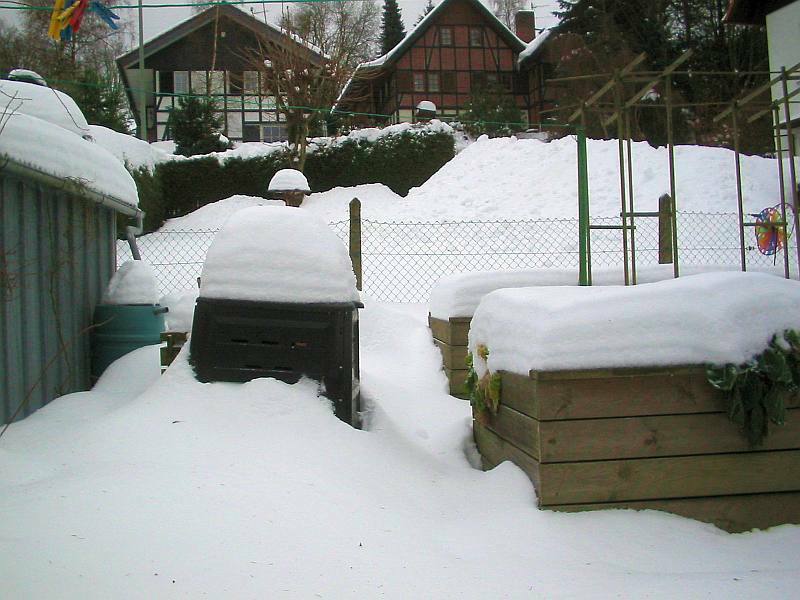 Sogar der Plastikkomposter sieht momentan richtig nett aus: