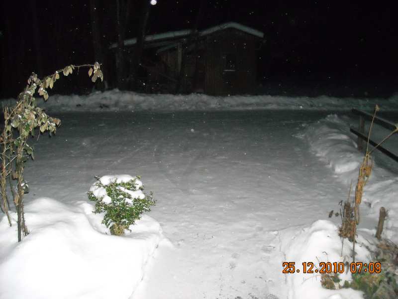 .Uns hat das Christkind nochmal so geschätzte 25cm auf den Schnee draufgepackt, momentan haben wir -7°C, aber die Temperatur fällt noch.Unsere Sitzecke vorm Haus wurde auch neu aufgepolstert