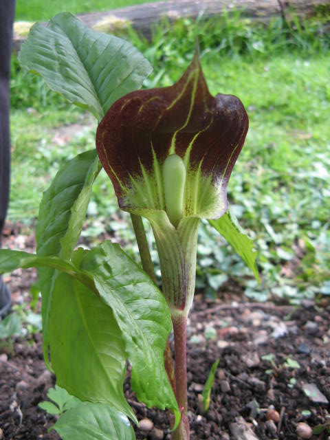 Von Blatt her sieht sie Arisaema triphyllum ähnlich (3 Blattfiedern), aber die blüht doch grünlich