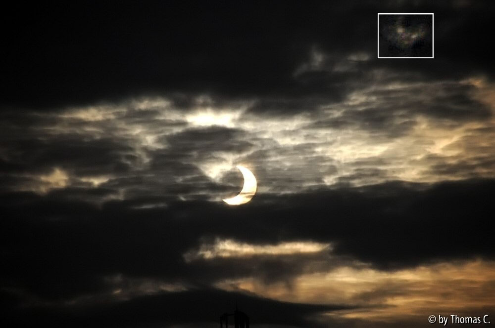 Deutlich besser.Werner, ich meine das Rauschen / die Tonwertabrisse z.B. in den dunklen Partien links. - Meinst du mit Mephisto den Kopf mit Hut direkt links oberhalb der Sonnensichel, oder die 'Maske' auf 1/2 2 von der Sonne aus, fast am Rand?