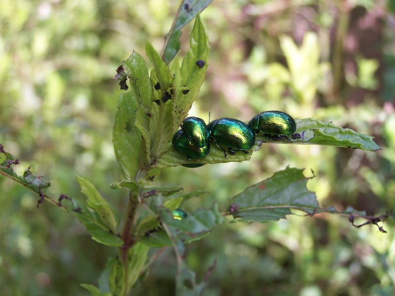 In meinem Minzebeet tummelten sich die ebenfalls wie verrückt, allerdings mit wunderschöner metallischer Blaufärbung. Ich liess sie gewähren, da ich eh so viel Minzen habe. Per Zufall entdeckte ich aber ein gutes Mittel, das die Population sehr verringert: Die Minzen absäbeln. Sie wachsen ja bekanntlich sehr schnell wieder nach, die Käfer wurden dadurch trotzdem bedeutend weniger (und kamen auch nicht mehr wieder). Ich hab's fortlaufend bei einem Teil der Minzen gemacht (weil ich sie verarbeiten musste); dabei fand ich erstaunlich, dass die Käfer nicht einfach über die restlichen herfielen, bzw. sich irgendwohin verkrümelten und auf den Neuaustrieb warteten.