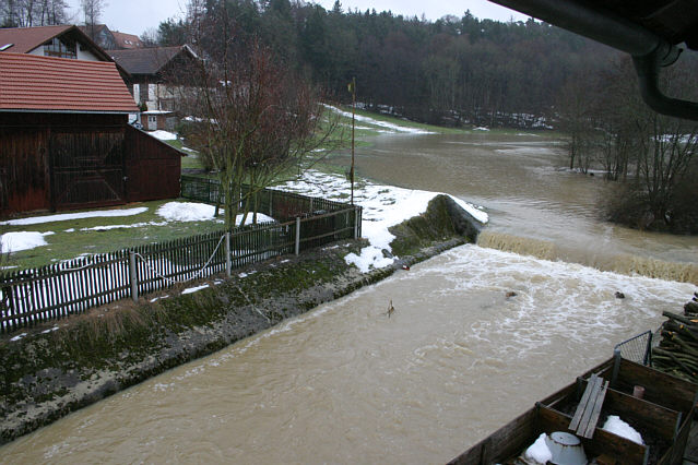 .Unser Bach hier fließt, seitdem die Fischteiche auf dem Nachbargrundstück aufgegeben wurden, nur noch, wenn Hochwasser ist, direkt an unserem Hang nur wenige Meter vom Haus entfernt, der Hauptverlauf geht jetzt über das Grundstück unserer Nachbarn, leider wurde deren mühsam angelegter Gemüsegarten schon einmal komplett weggespült, jetzt haben sie ihn weiter nach oben an den Hang verlegt, dafür aber auch nicht mehr der schöne Auboden.
