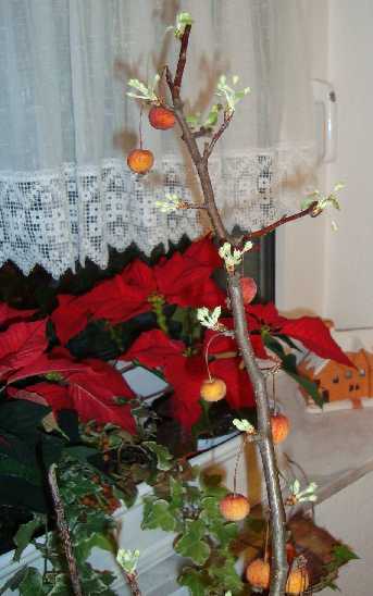 Hallo,ein merkwürdiges Bild bot sich mir, als ich aus dem Urlaub zurückkam.Der Zierapfel blüht - zum Beweis daneben der Weihnachtsstern!