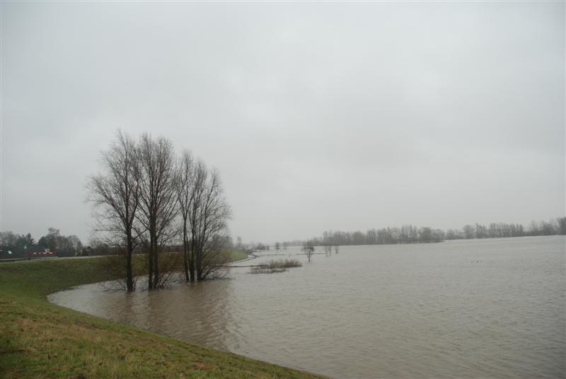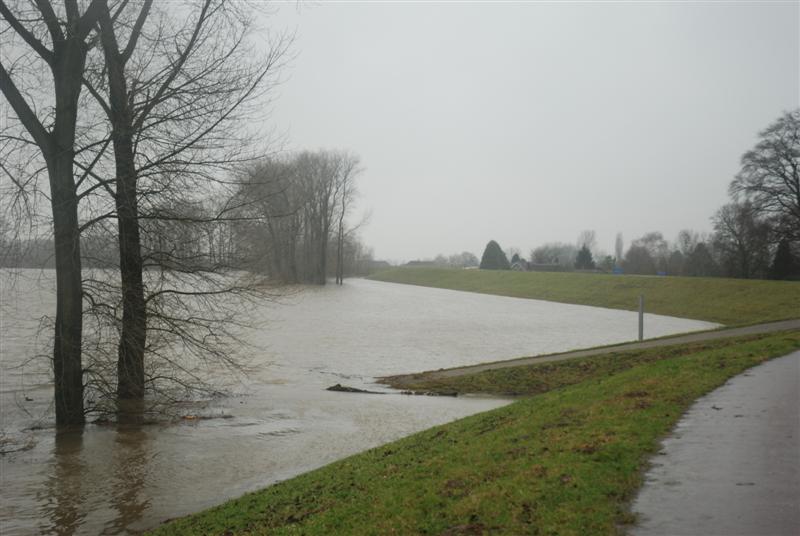 So hoch steht das Wasser schon am Deich. Da gehe ich runter wenn ich mit den Hunden zum Waal laufe. Das ist aber noch gut einen Kilometer.