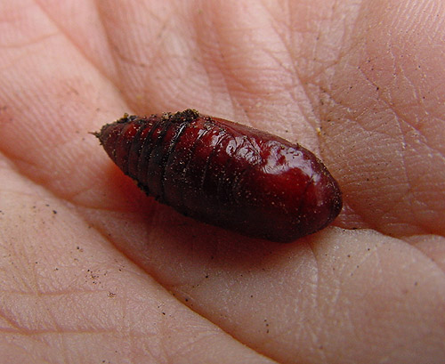 Wie groß ist sie denn? Diese Tönnchenpuppen sind typisch für Fliegen. Es gibt ja sehr viele Arten. Die Stubenfliegenpuppen sehen meines Wissens fester aus. Ich wollte damit auch eher die Richtung andeuten. Eigentlich denke ich, es wird etwas größeres als eine Stubenfliege.LG Silvia