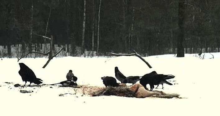 Ja, nach einigen Tagen wurde heute wieder gefüttert. Die Raben und Krähen hatten es zuerst spitz: