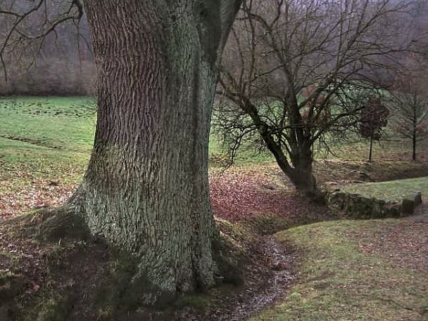 Links ist der, für mich, spannende Wurzelbereich, die Basis der dominanten Eiche. Dieser Bereich zeigt auch teilweise die Geschichte des Wachstums.Darum wollte ich den unbedingt dabei haben.Den Baum weiter nach links rücken kann leider keine Bildbearbeitung.