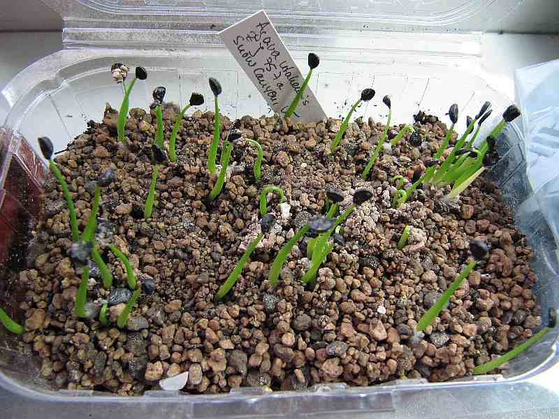 Nicht schlecht.Hast dann ja mehr als 100 kleine Agaven :) Wie es scheint, leider auch einen 100% Albino. Frühbeet ? Terrasse ?Auf jeden Fall regengeschützt, warm und lichter Halbschatten.Kannst die Töpfe ja nächstes Jahr an verschiedenen Stellen aufstellen. Wirst sehen wie sehr sie sich im Wachstum unterscheiden werden.Die Minustemperaturen sind bei den frostharten Arten wohl eher selten das Problem. Problem ist die Feuchtigkeit im Boden und der Luft während der winterlichen Monate im Jahr.