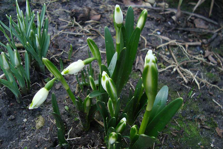 Hier stehen die Schneeglöckchen in voller Sonne vor der Südwand des Hauses in sandigem Boden, in Komposterde mit Laubauflage im tiefen Schatten und im Park sowieso an allen möglichen und unmöglichen Stellen. Den Schneeunglückchenschimmel habe ich noch nirgendwo entdeckt. Das kann ruhig so bleiben. Ich denke, dass ist eine Infektion, die um sich greift, wenn sie einmal da ist. Geschwächte Zwiebeln an zu nassen Stellen müssen zuerst dran glauben.