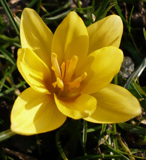 Ein vierzähliger Crocus (chrysanthus oder eine Hybride):