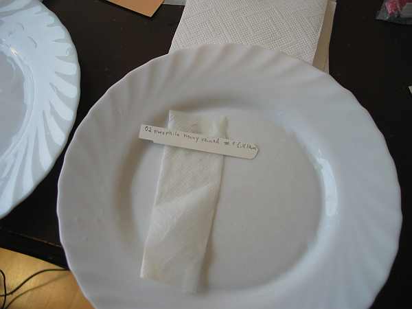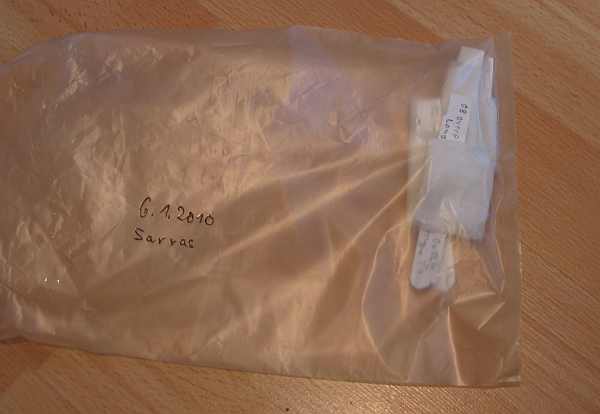 Dann das Tuch zusammengefaltet. Den beschrifteten Sticker eingewickelt......