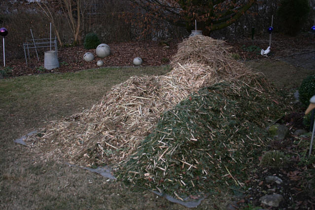 Hallo !Ich bin auch hundemüde. Habe einen riesigen Berg Sträucherschnitt gehäkselt. Habe den Haufen erst nachher fotografiert. Aber wer die Menge Häkselgut sieht, kann sich den Haufen vorstellen. Konnte heute nicht mehr weitermachen. Das verteilen mache ich am Montag/Dienstag, wenn ich mich wieder ausgeruht habe