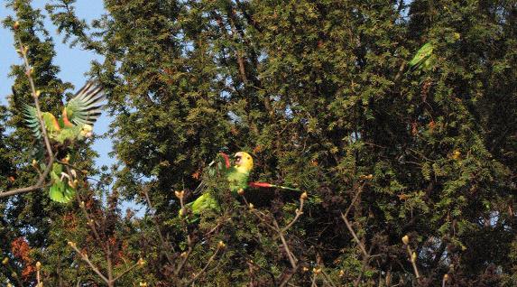 Das waren so etwa 10 Gelbkopfamazonen. Die halbe Eibe ist schon pinziert.