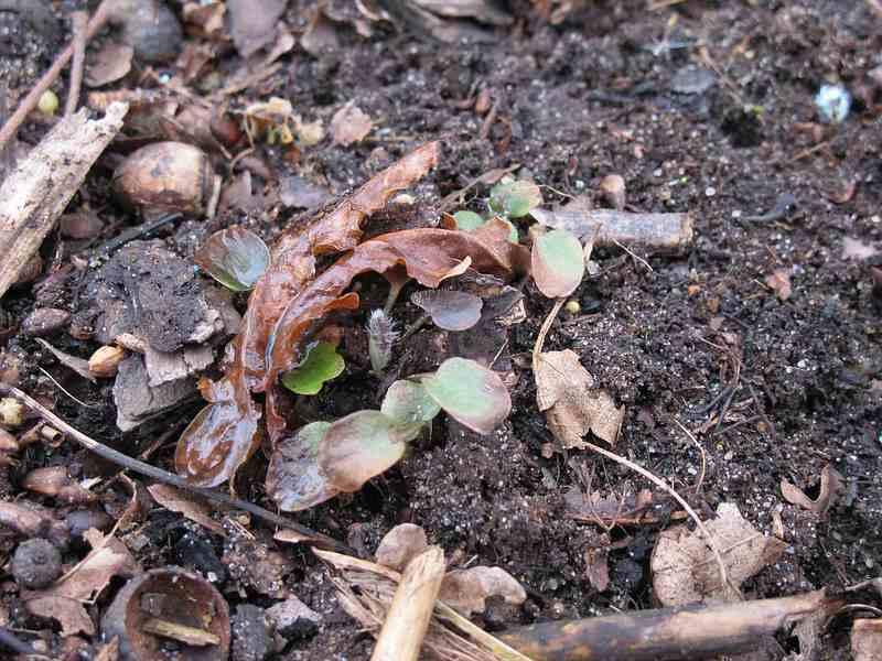 Und aufpassen! Manchmal sind die Sämlinge unter Falllaub versteckt. Dort können sie ersticken.Genau! Jäten nur mit spitzen FingernDu brauchst Geduld, und komm nicht auf die Idee, zu hacken!.