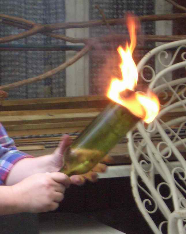 Interessante Konstruktion! Und beim Flaschenboden absprengen kann einem nichts um die Ohren fliegen? Sieht ganz schön gefährlich aus.