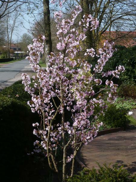 Eine "nette" kleinbleibende Zierkirsche ist z.B. auch Prunus incisa 'Kojo No Mai'.Die Endhöhe ist für viele kleinere Gärten zudem auch meist nicht das größte Problem sondern die ausladenden Kronen vieler Sorten. Als Alternative zu der sehr verbreiteten Prunus serrulata 'Kanzan' bieten sich die Säulenforn P. s. 'Amongawa' oder die noch sehr wenig verbreite Scharlachkirsche P. sargentii 'Rancho', die nach 30 Jahren eine Breite von nur 3 Metern erreichen soll.